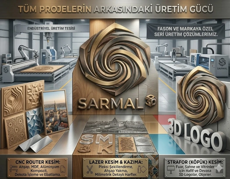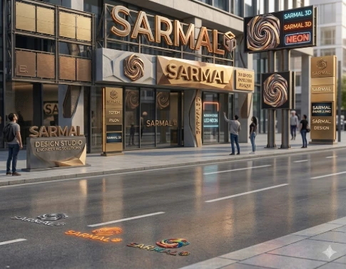 Sarmal 3D; mimari cephe sistemlerinden devasa çatı tabelalarına, araç filo giydirmesinden ahşap fuar standlarına kadar her detayı milimetrik hassasiyetle üreten tavizsiz reklam fabrikasıdır.